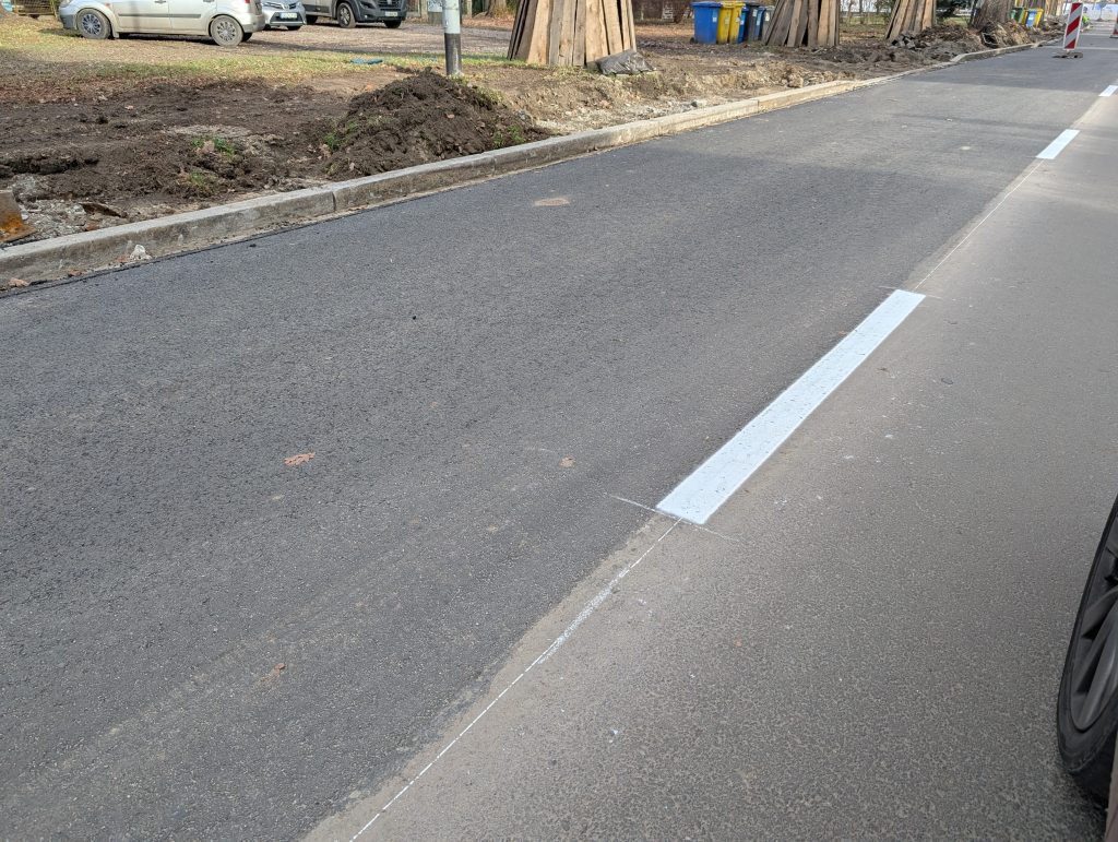 Kierowcy mogą już cieszyć się równą jak stół nawierzchnią. Prace przy parkingu są prowadzone z użyciem specjalnych płytek, które umożliwiają wodzie wsiąkanie w grunt. Rowerzyści muszą jeszcze poczekać na lepszą jazdę, ale miasto ogłosiło już przetarg na projekt dwukierunkowej drogi rowerowej po północnej stronie Olszewskiego, na odcinku od ulicy Tramwajowej do Gersona.