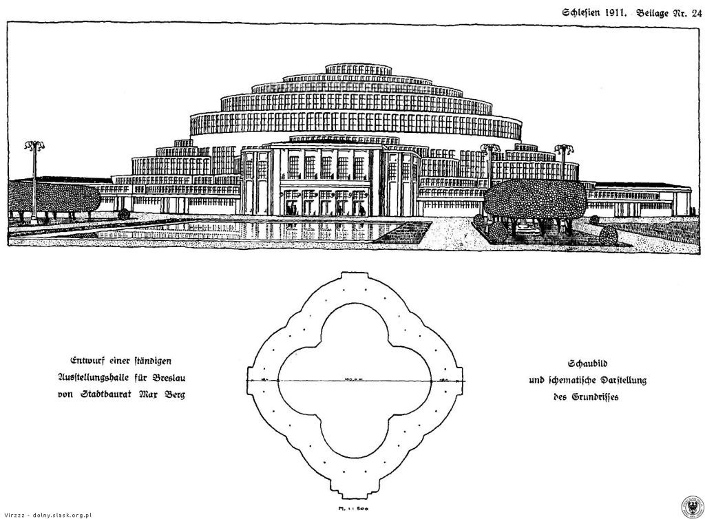 Do konkursu na projekt głównego budynku wystawy zgłoszono aż 43 propozycje. Wygrał nowatorski i wizjonerski koncept Maxa Berga, 36-letniego miejskiego architekta Wrocławia. Pomimo oryginalności projektu budził on ogromne kontrowersje, głównie ze względu na wysokie szacowane koszty – 1,9 miliona marek. Projekt wykorzystywał żelbet w sposób nieznany wcześniej architekturze, co wzbudzało sceptycyzm wśród współczesnych inżynierów.