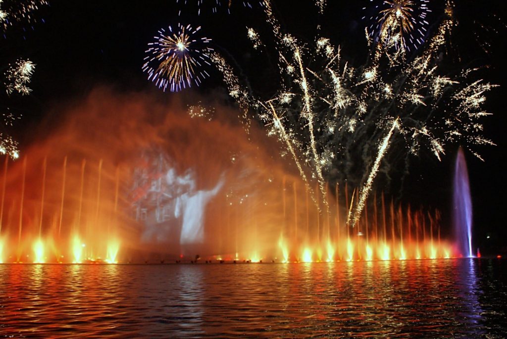 Podczas projekcji ekran tworzony z kropel wody ma powierzchnię aż 400 metrów kwadratowych. Wodnym widowiskom towarzyszy muzyka klasyczna, współczesna, pop oraz ambient.