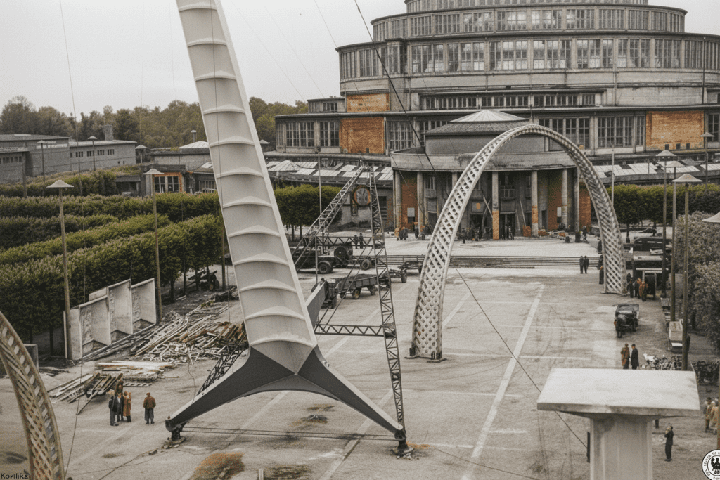 Z okazji Wystawy Ziem Odzyskanych przed Halą Stulecia 3 lipca 1948 roku wzniesiono Iglicę – stalową konstrukcję o wysokości 90,3 metra (pierwotnie 106 metrów).